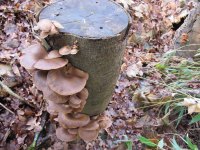 Der Stamm trägt nur an einer Seite Austernpilze. Teilweise waren