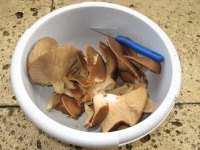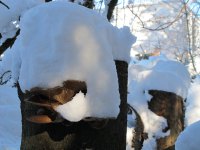 Die Pilze sind hart gefroren, so dass ich kein Messer brauche, sondern